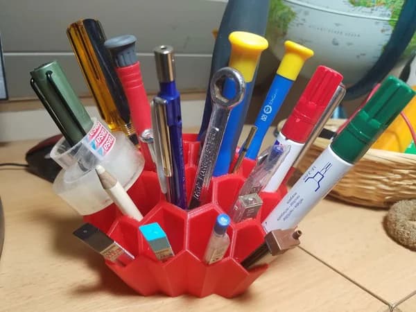 3D baskının en güçlü olduğu alanlardan biri, geleneksel yöntemlerle üretilmesi zor olan karmaşık geometrik şekillerdir. Bal peteği (honeycomb) tasarımı, masanıza modern bir hava katarken kalemlerinizi ve ofis gereçlerinizi organize etmenin en estetik yolunu sunar.